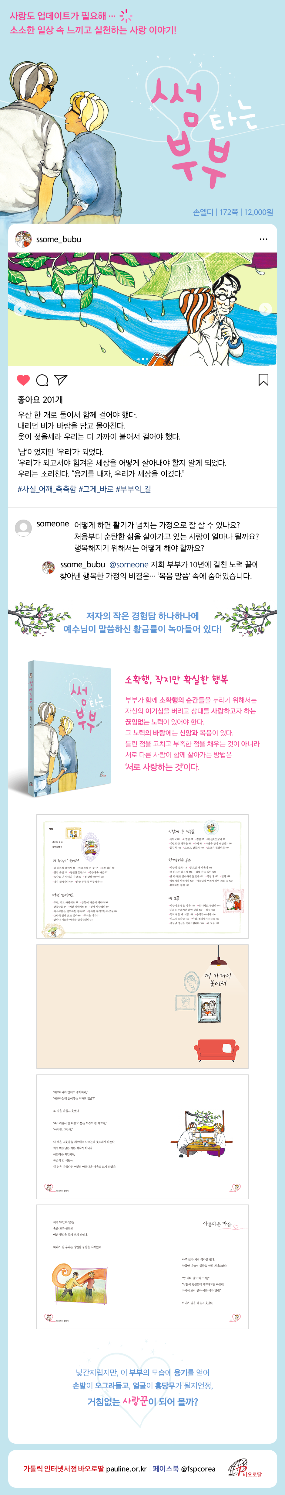 갈수록 가정 해체가 심각하게 대두되는 때에, 오랜 기간 포콜라레 정신 안에서 상담과 강연 등으로 많은 가정의 실질적 문제에 도움을 주고 있는 저자 부부의 구체적인 사랑 이야기를 통해 5월 가정의 달, 가정 복음화를 위한 이 책을 출간하게 되었다.