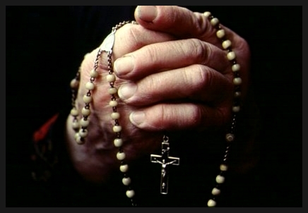 묵주의 기도를 바치시는 신자들의