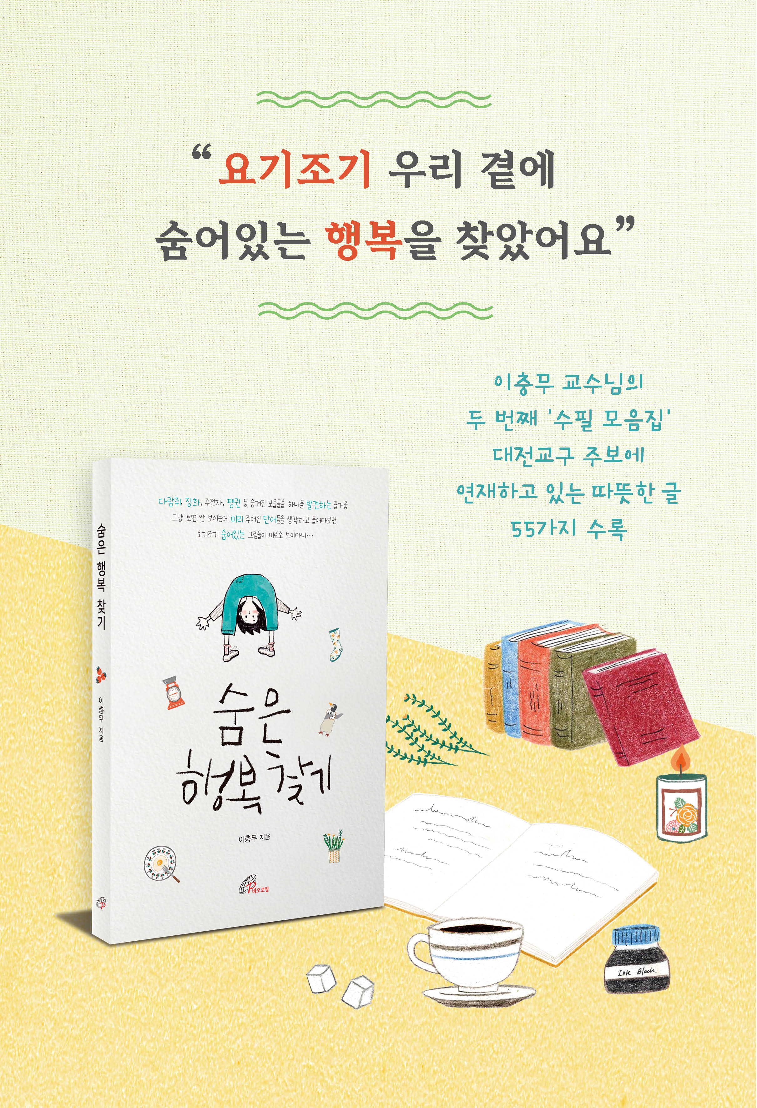 이 책은 우리 각자의 삶 속 여기저기에 숨겨진 행복들을 찾아 함께 나누자며 초대하는 손길처럼 느껴진다. 친구와의 만남에서, 가족들이 오붓하게 모이는 시간에, 공동체 모임의 나눔 전에 이 책 속의 수필 한 편을 맛난 애피타이저로 사용하면 참 좋을 듯싶다. 저자의 이 글들을 마중물로 삼아 독자들이 나눔의 장을 활짝 열게 된다면 저마다의 숨은 행복을 발견하는 환희의 잔치가 되리라 확신한다.