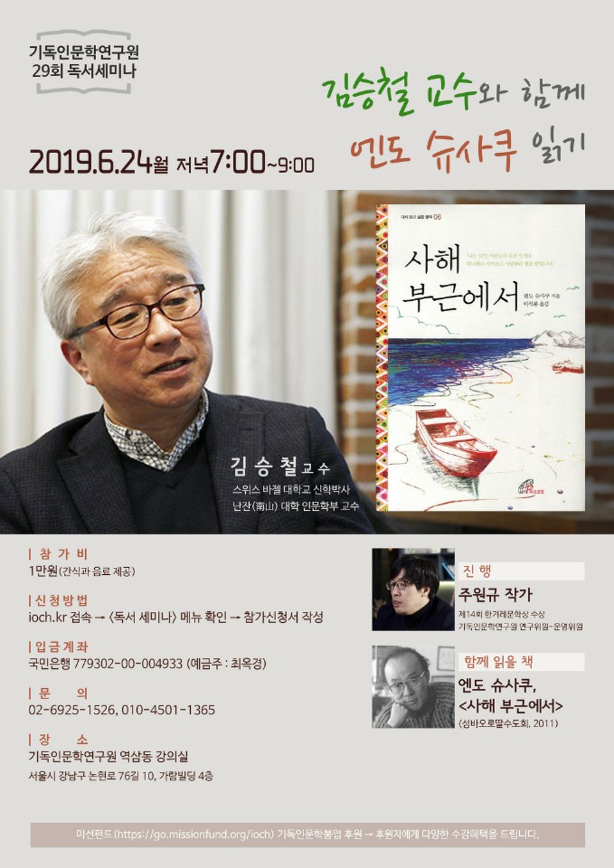 <김승철 교수와 함께 엔도 슈사쿠 읽기> 독서세미나가 있어서 알려드립니다.