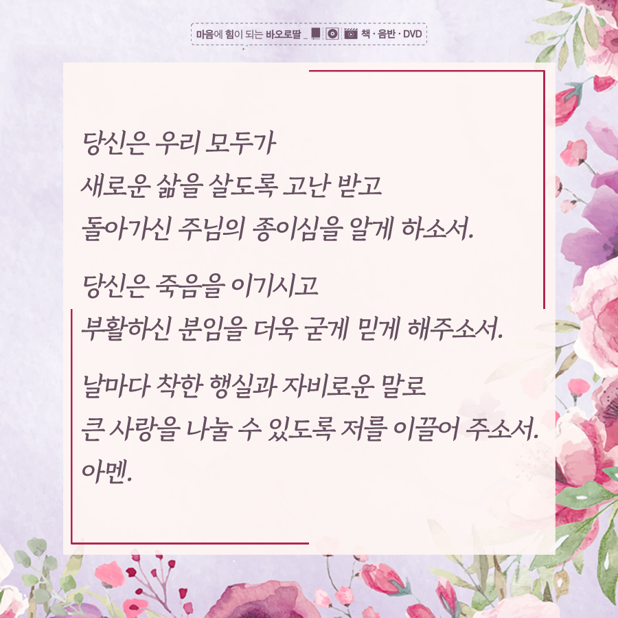 도란도란 책과 함께 말하지 못한 마음속 고민까지 끌어안는 기도 바오로딸 2019. 11. 28. 11:39 ▶ 이럴 때는 이런 기도 이럴 때는 이런 기도 | 도서 | 가톨릭 인터넷서점 바오로딸 성바오로딸수도회 운영, 가톨릭 서적 및 음반, 비디오, 성물판매, 성경묵상 제공 www.pauline.or.kr