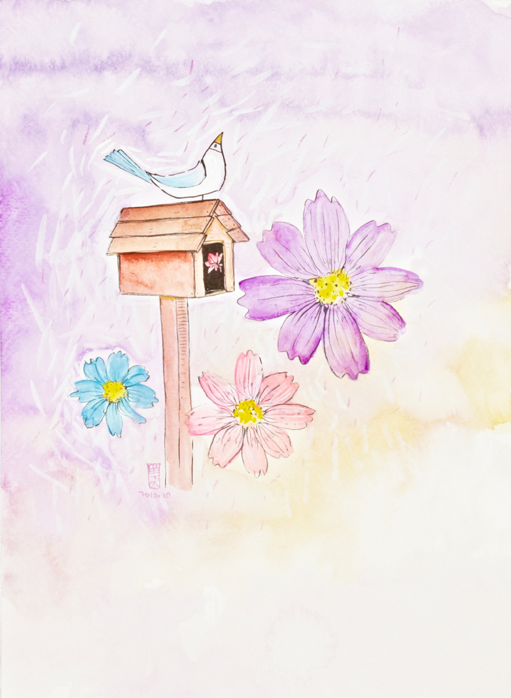 창문 너머로 까치 소리 들립니다.